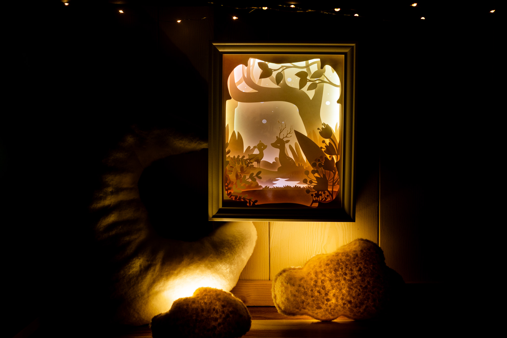 Ce cadre est composé de 9 couches de papier découpé, créant un effet de profondeur unique.Il est équipé d’une bande LED intégrée qui diffuse une lumière douce et chaleureuse.Chaque création est fournie avec son adaptateur, ainsi qu’un cordon avec interrupteur pour une utilisation simple au quotidien.